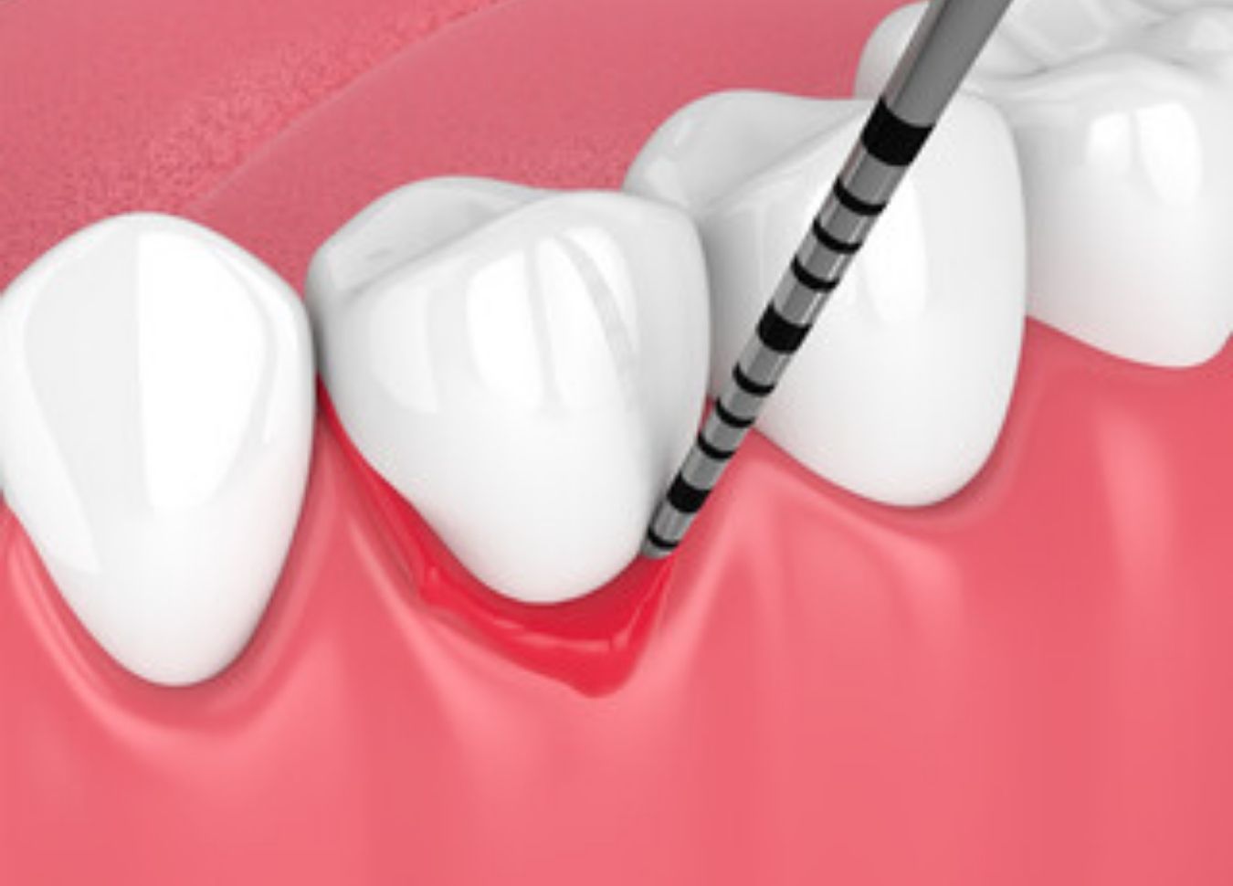 歯と歯ぐきの間にある「歯周ポケット」の深さを測ります。一般的に3mm以内が正常で、4mm以上あると歯周病の疑いがあります。
