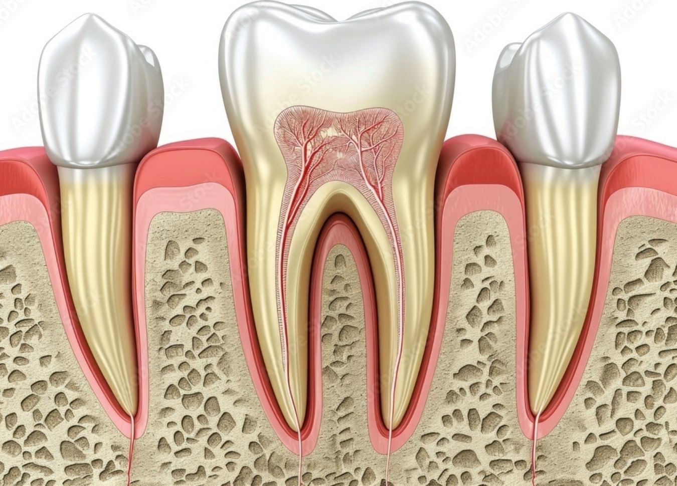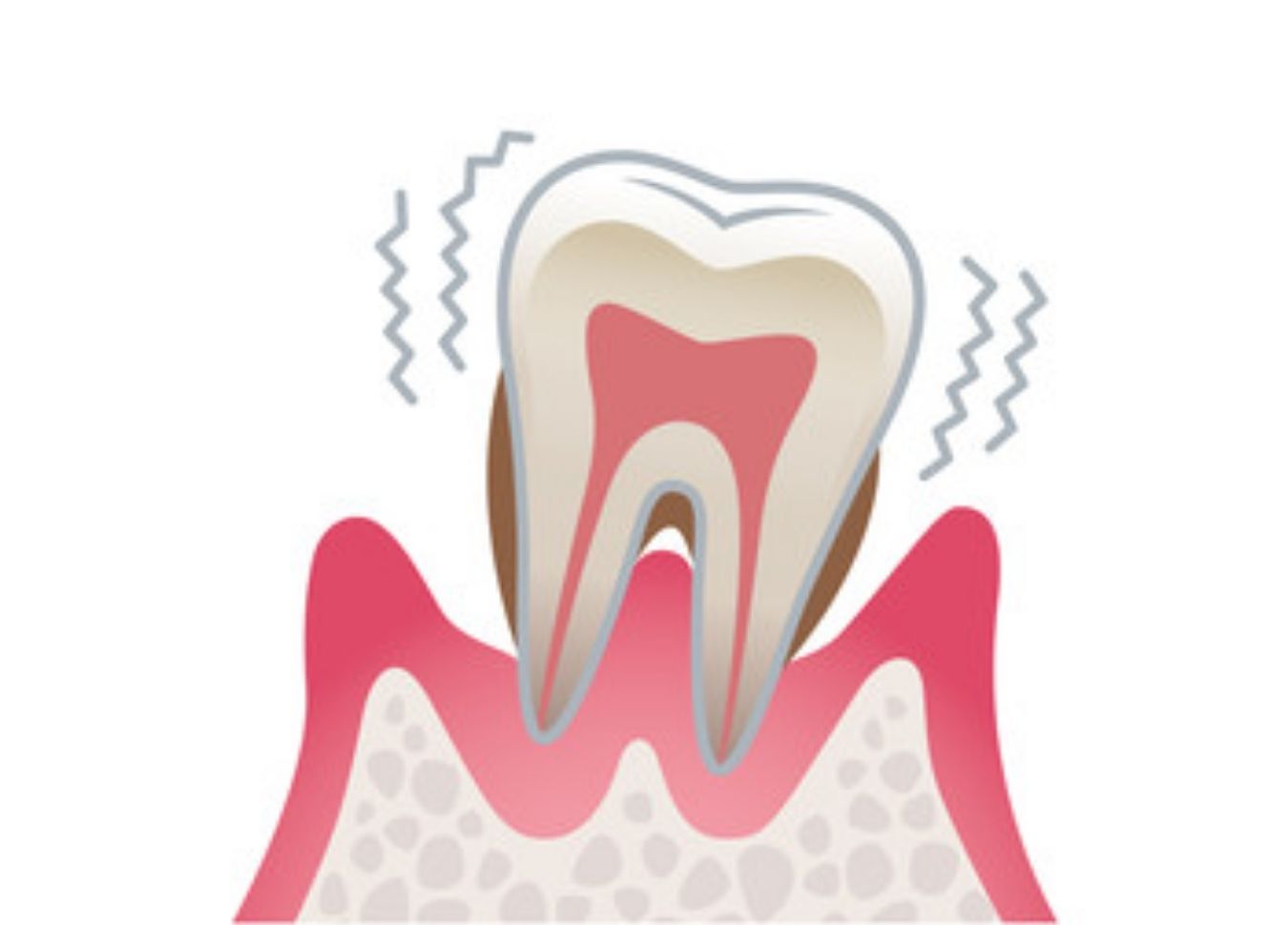 初期のうちは痛みがほとんどなく、自覚症状が出にくいため、気づかないうちに進行することがあります。悪化すると歯がグラつき、最終的に自然に抜けてしまうこともあります。