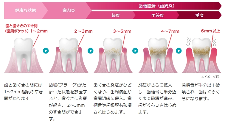 歯周病は、ある日突然悪化するのではなく、時間をかけて少しずつ進行していきます。